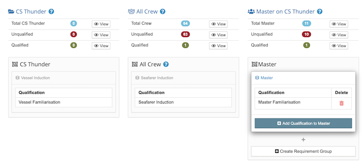 It can be troublesome keeping track of which Crew are inducted on which Vessels. Our Training Module allows you to define what Training is required for a specific Vessel. Once setup any non-conformities will be flagged automatically.